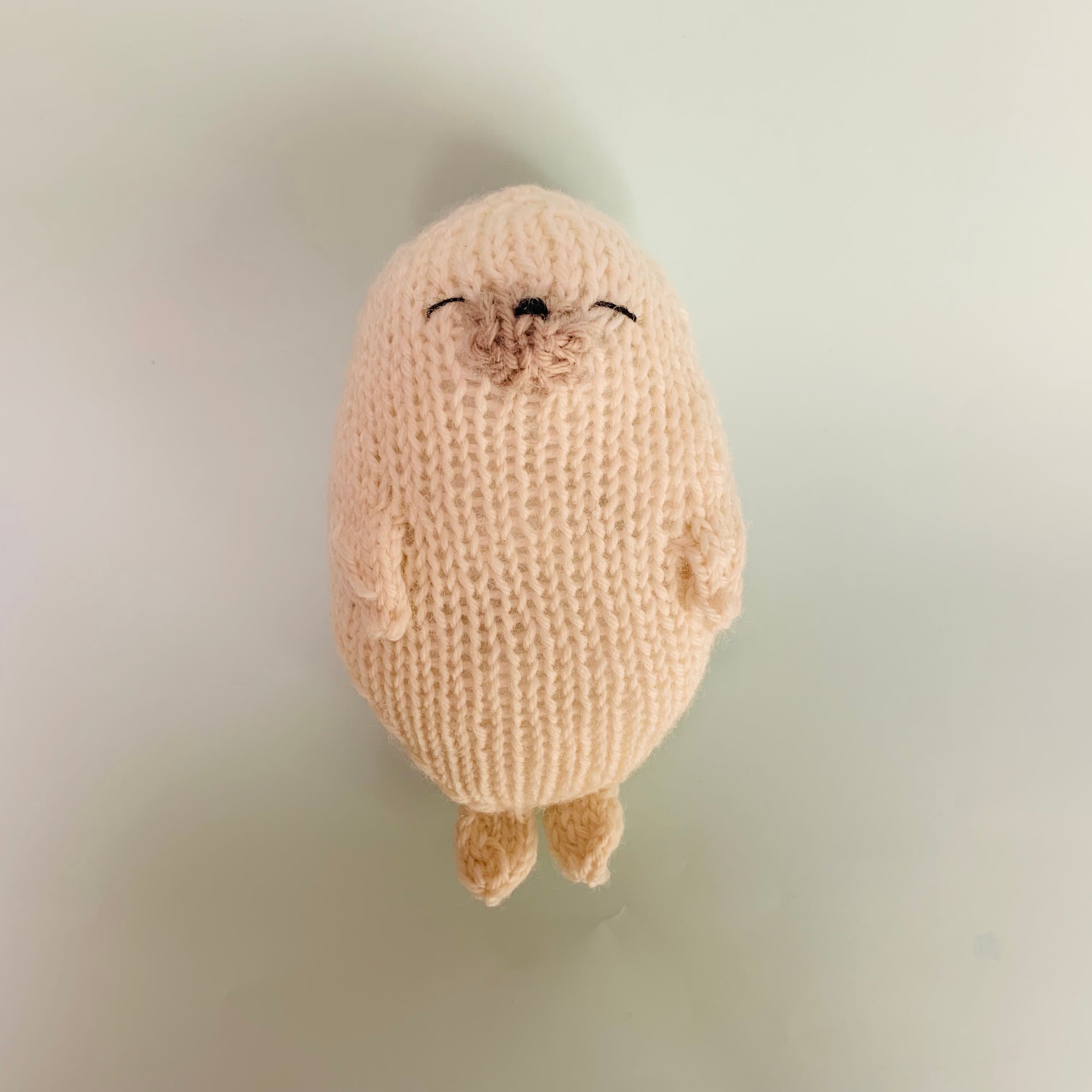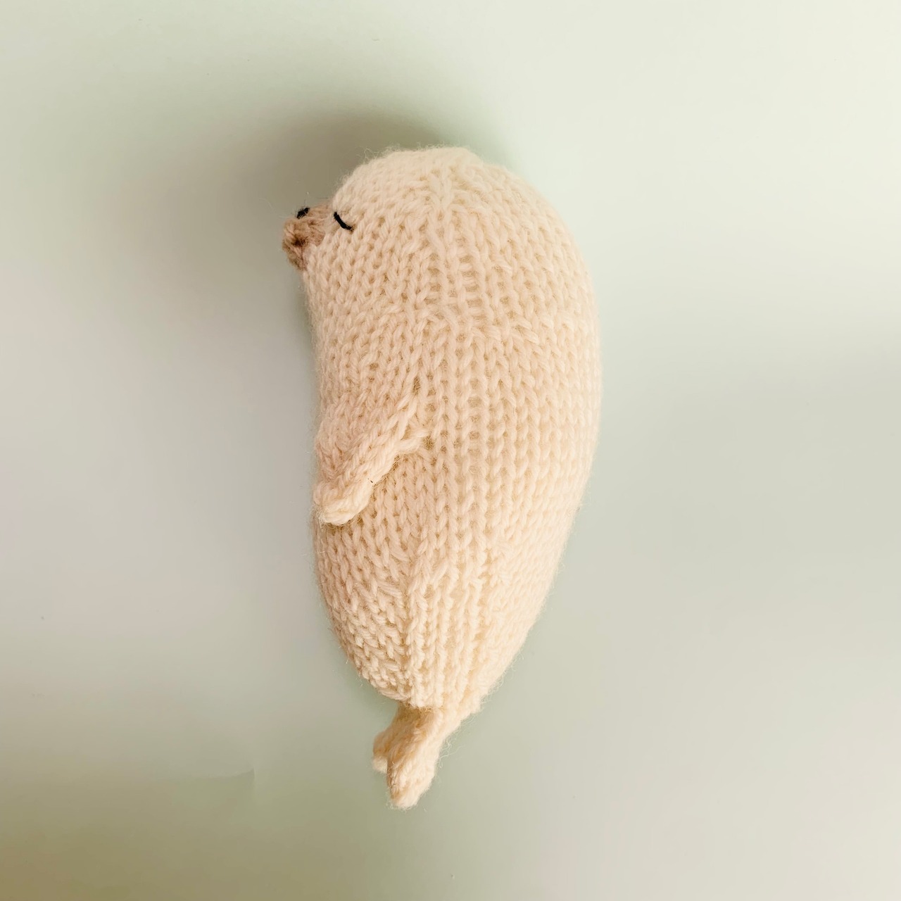 棒針で編む、「やる気のないアザラシ」のあみぐるみです。もたっとしたフォルムが何とも言えない、何だか憎めない奴です。【パターンのみの販売です。】